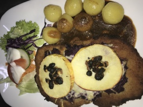mit Rotkohl, Apfelringe, Nussmix und Käse überbacken
